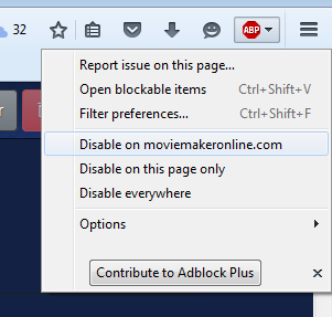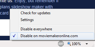 Programi falas për bllokimin e reklamave çaktivizohet në faqen moviemakeronline.com kështu: